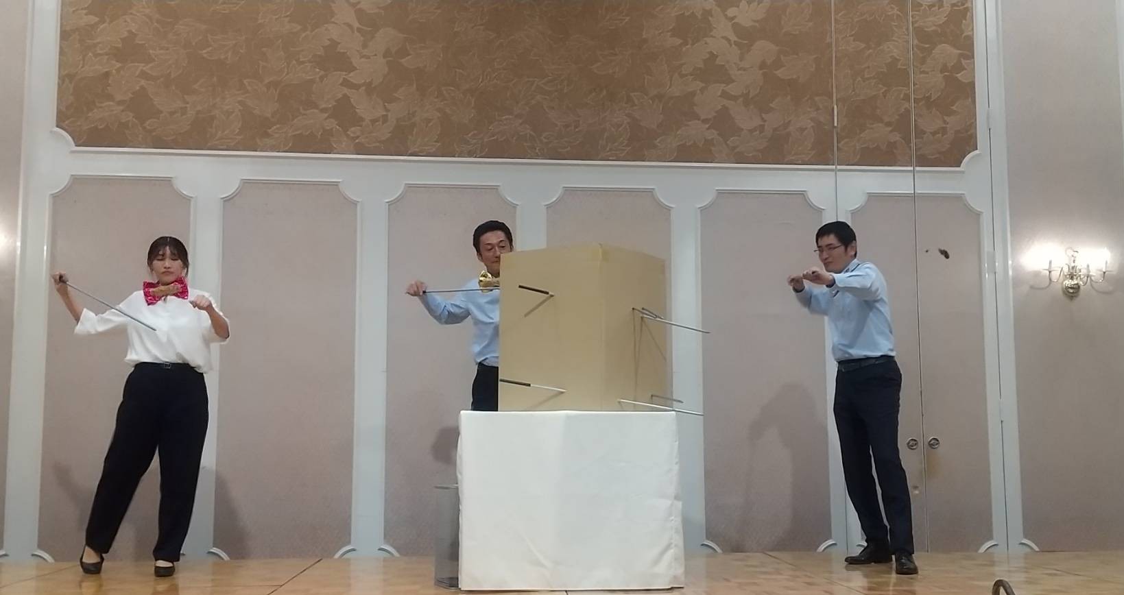 1部では、高山社長の挨拶や近況報告、社員紹介を行いました。2部では、懇親会を行い、アトラクションとして社員によるマジックショーを披露してとても盛り上がりました。