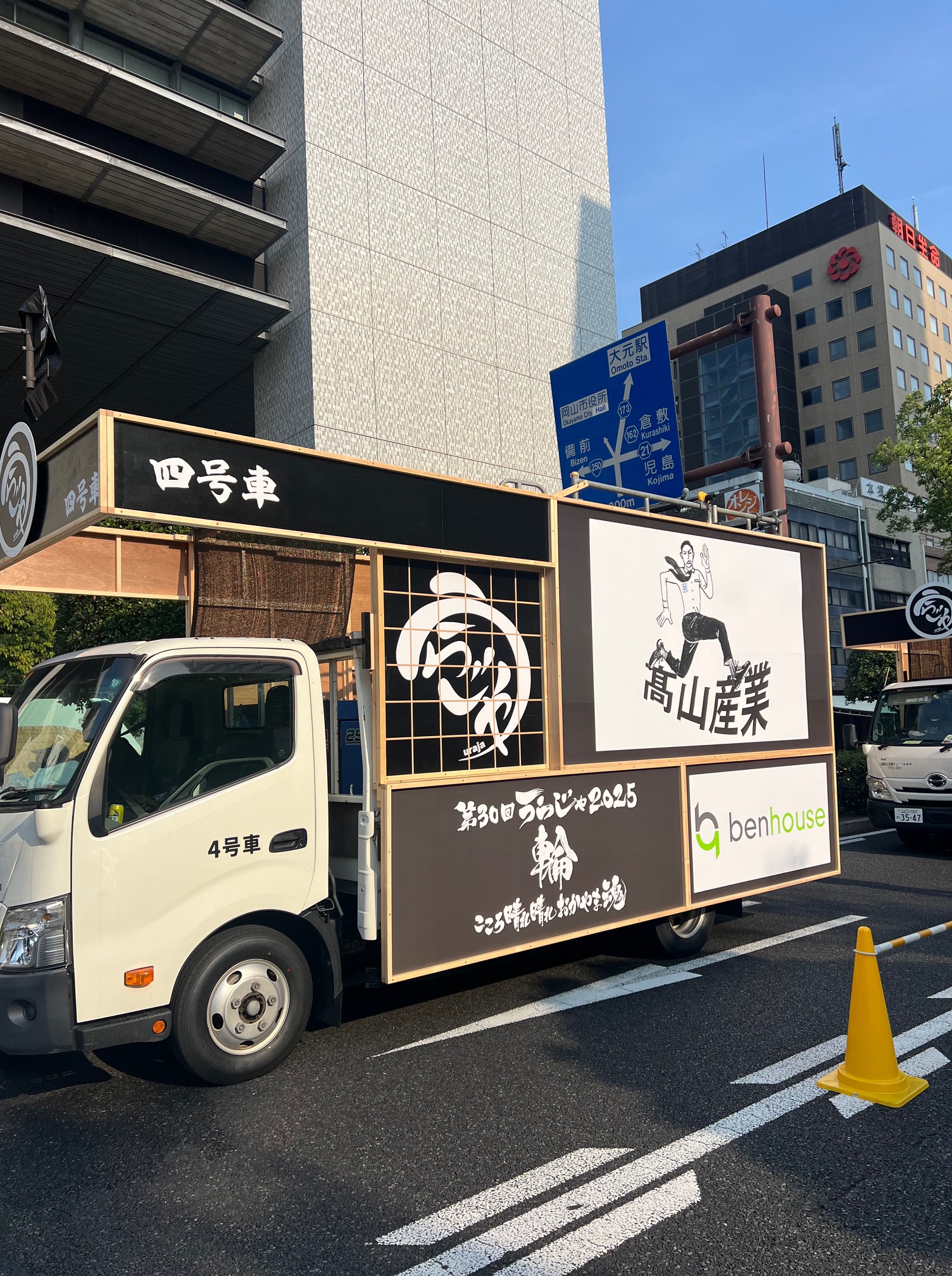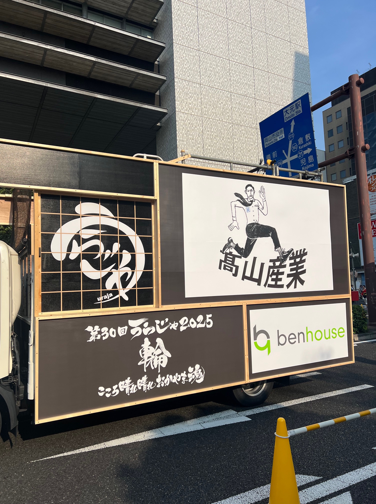 当社では、音響設備を積載し踊り連を先導する「地方車」の看板協賛をさせていただきました。猛暑のなかでも全力で踊る踊り子の姿はとても感動的でした。当社では地域のお祭りやイベントを応援しています。